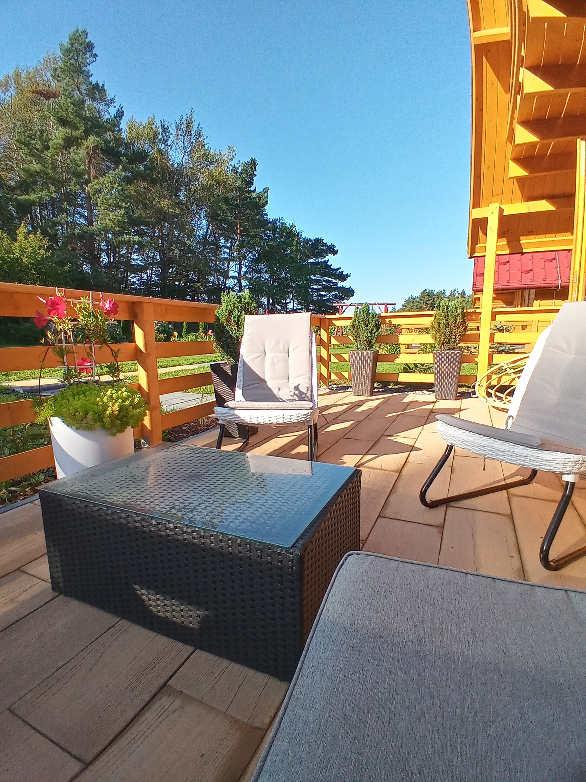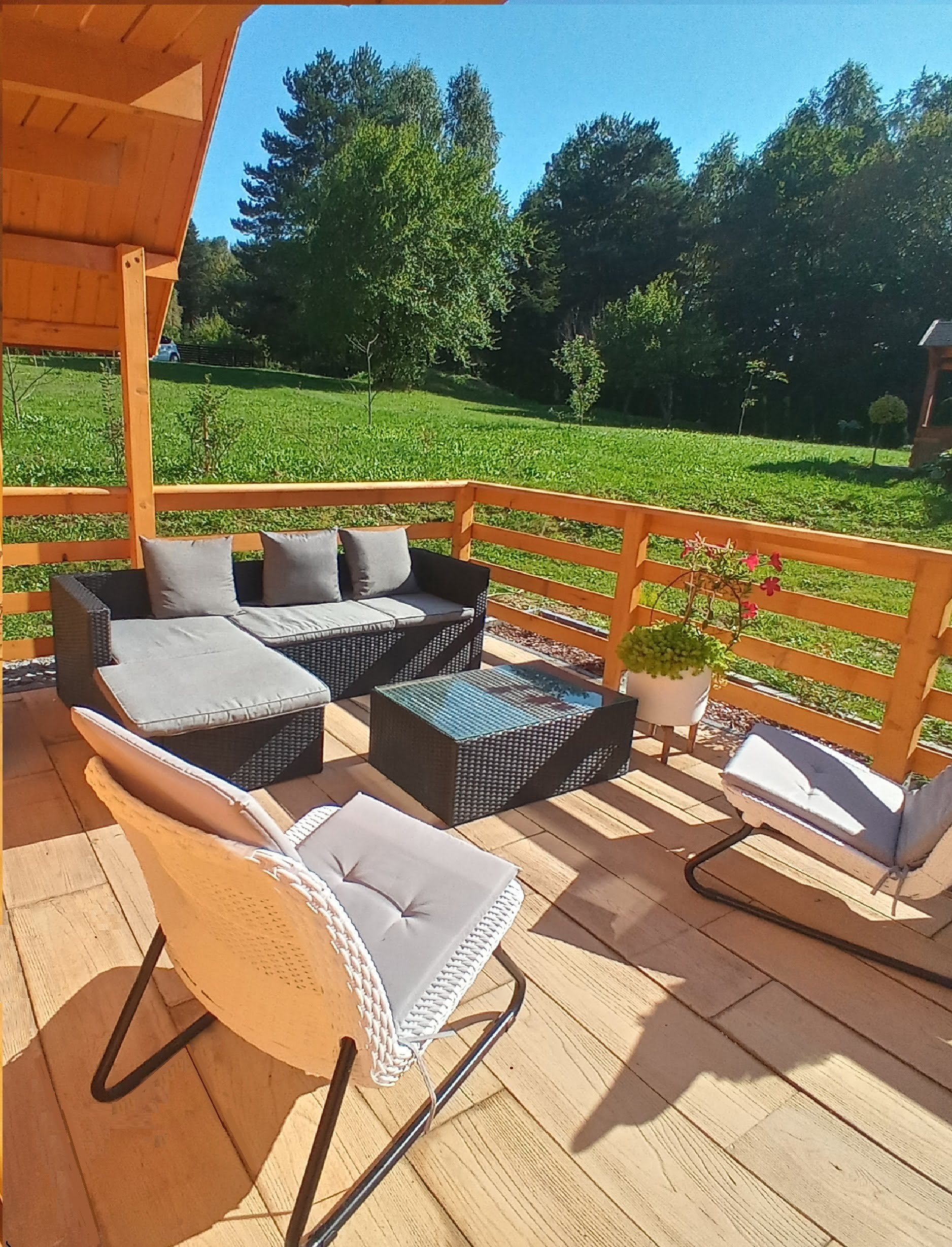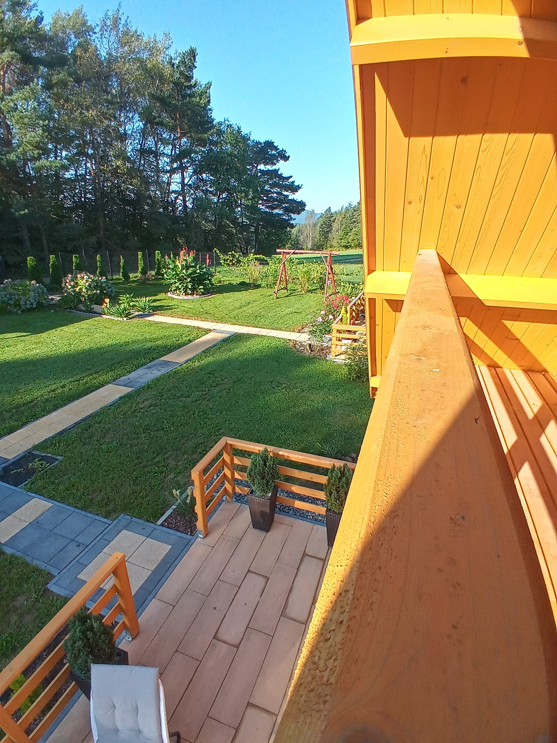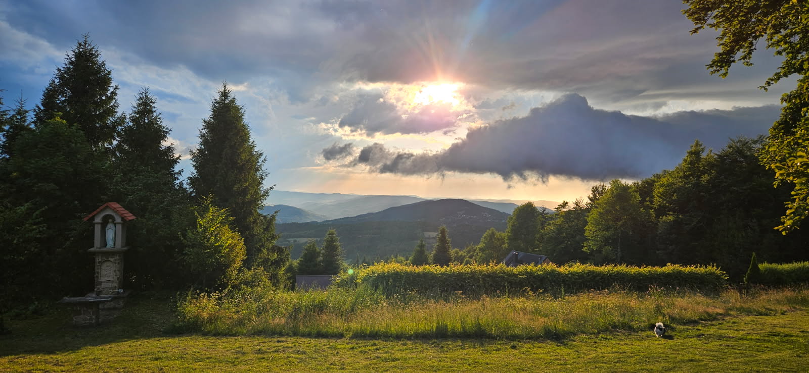 Pijąc kawę na tarasie, możesz podziwiać niesamowity widok na bezkresną przestrzeń. W dole, w pewnym oddaleniu, widać Kraków oraz Wieliczkę. Czasami o poranku, gdy w dolinach zalegają mgły, widok jest obłędny, natomiast podczas niepogody sami toniemy w nisko zawieszonych chmurach.